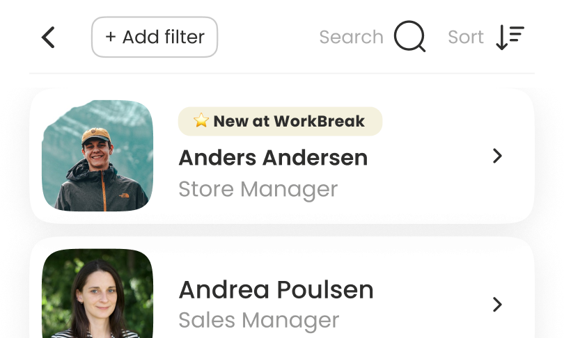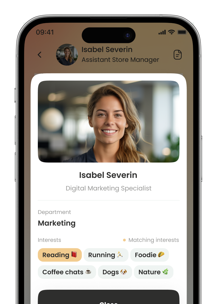 Explore your colleagues' interests, roles, and personalities through personal profiles. Build connections and a vibrant work community by discovering more about the people you work with.