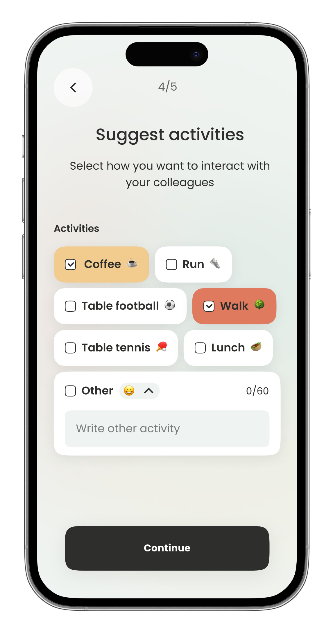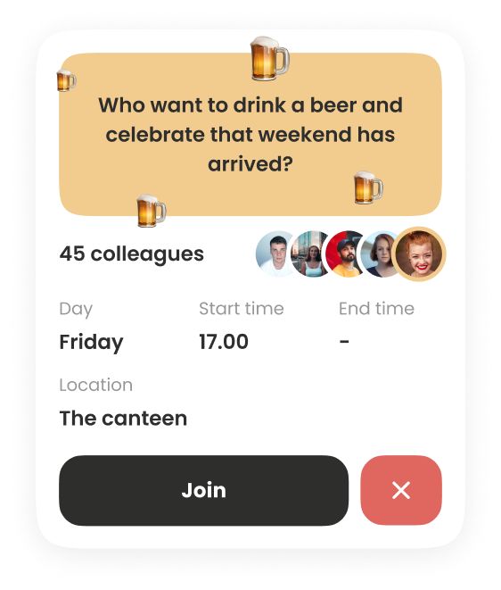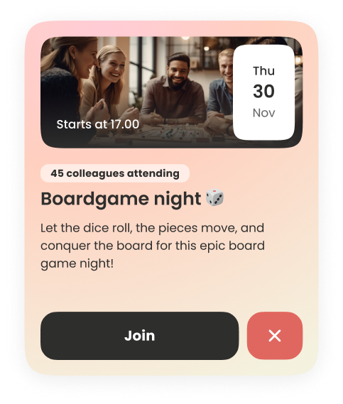 Effortlessly discover which colleagues are up for an activity, and take the opportunity to connect with new professionals from your office